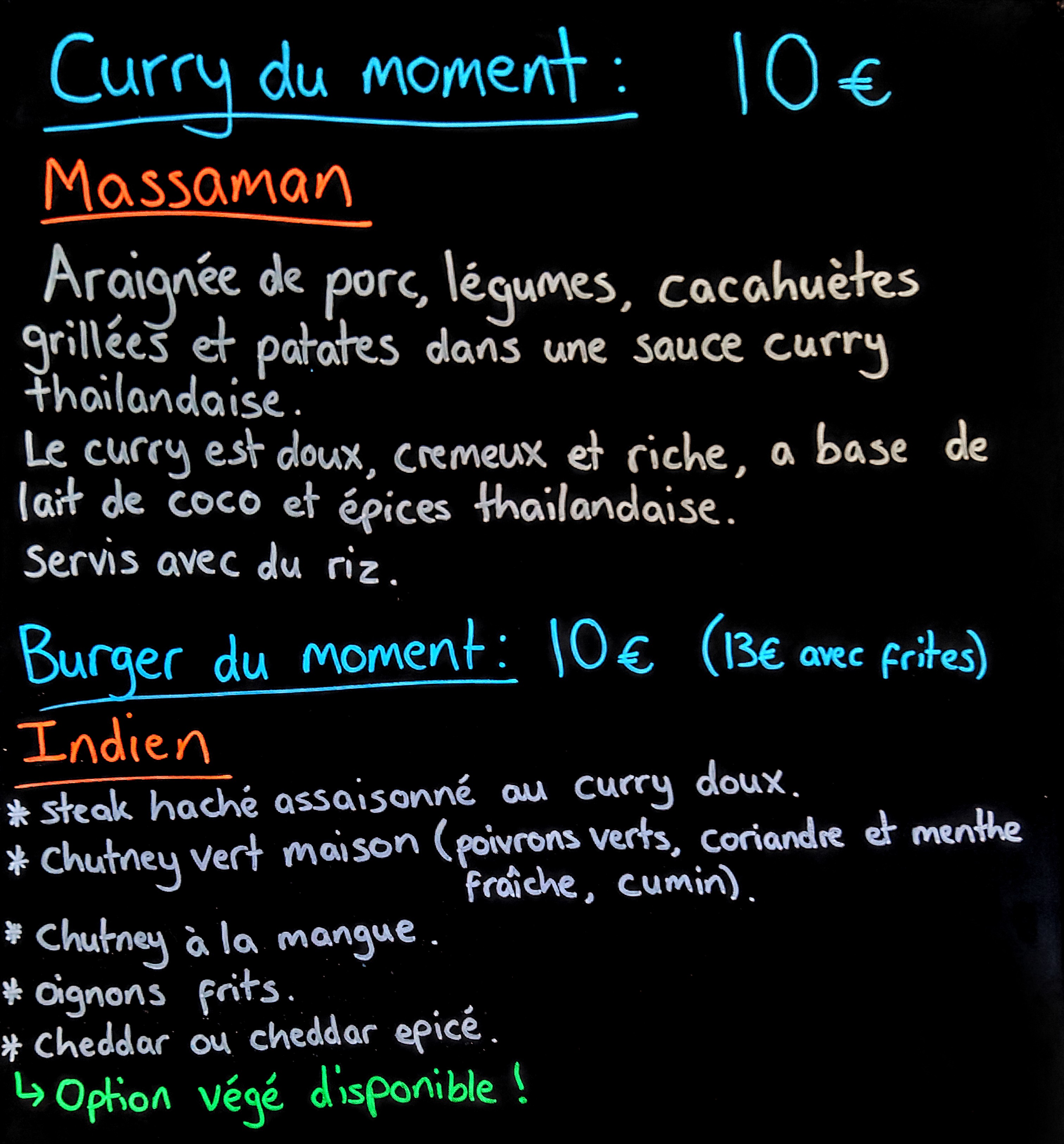 Nous faisons aussi des plats, tapas, et burgers pour les événements (mariage, anniversaire, festival, vide grenier etc..)